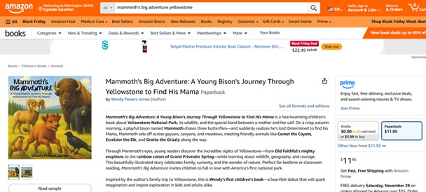 Mammoth’s Big Adventure: A Young Bison’s Journey Through Yellowstone to Find His Mama, is now available on Amazon! 🦬